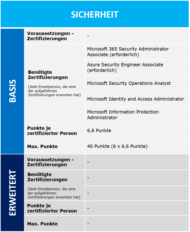 Für den Lösungspartner für Sicherheit gibt es keine Erweiterten Zertifizierungen, welche erreicht werden können.